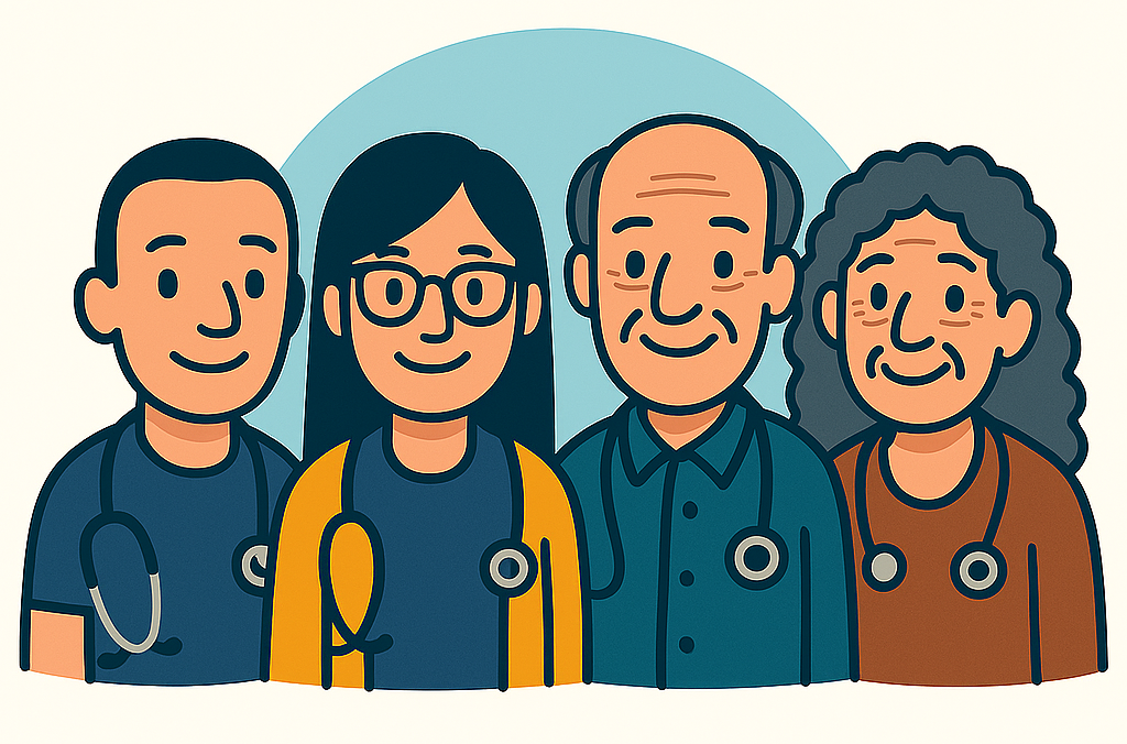 Zwei Fachärztinnen und zwei Fachärzte, (Kinder-) Krankenschwestern und medizinische Fachangestellte (MFAs)